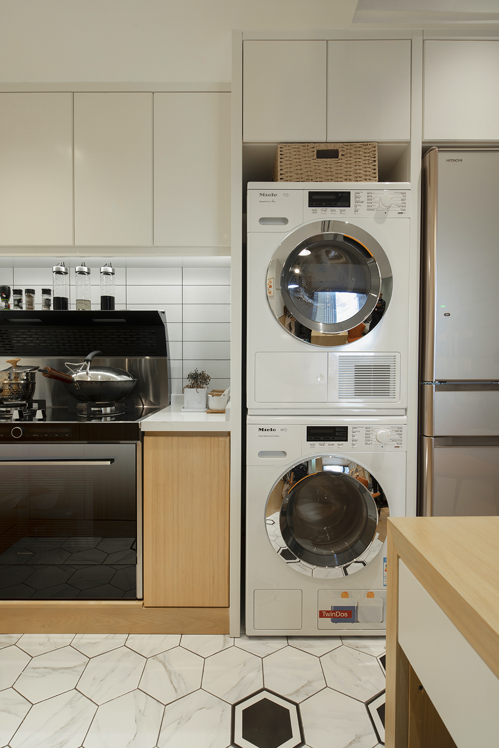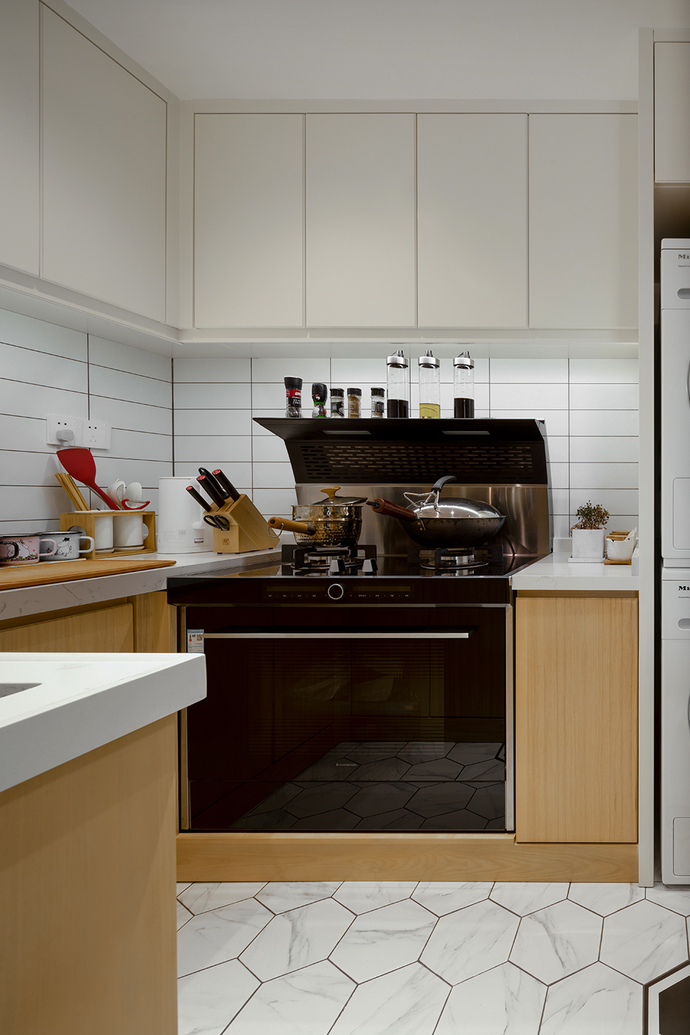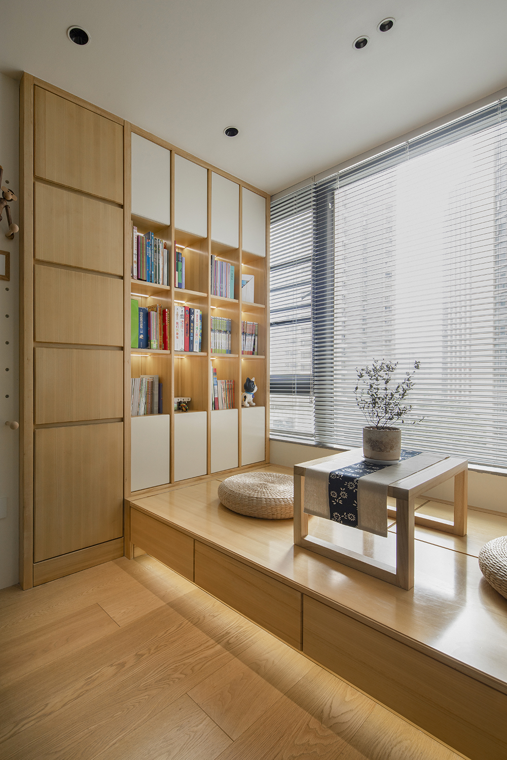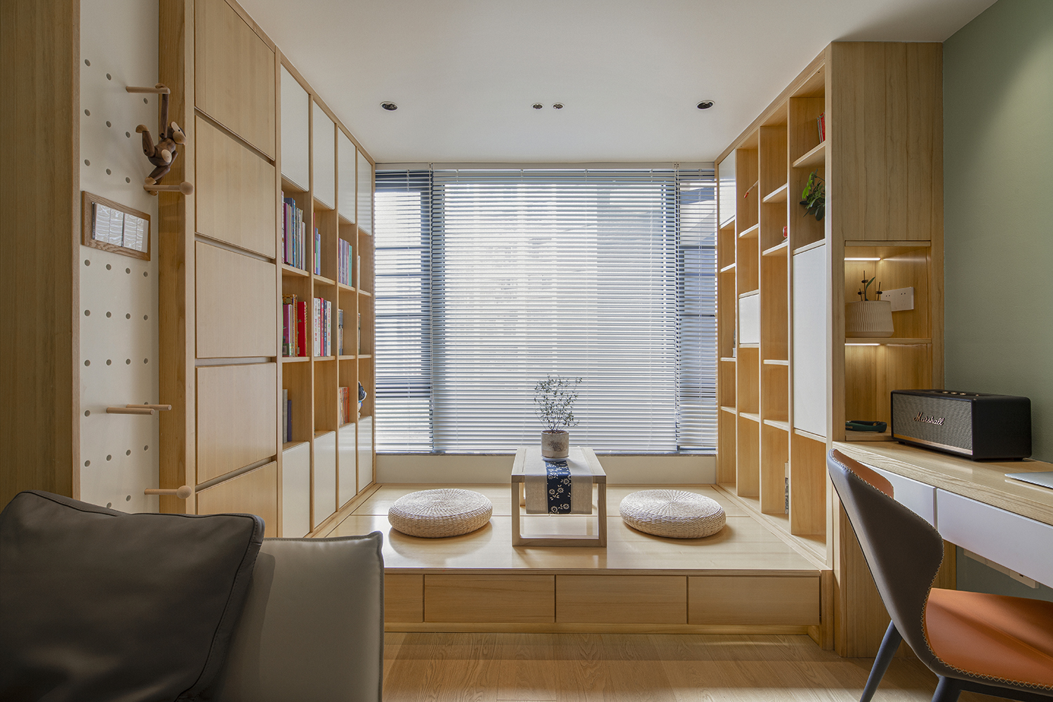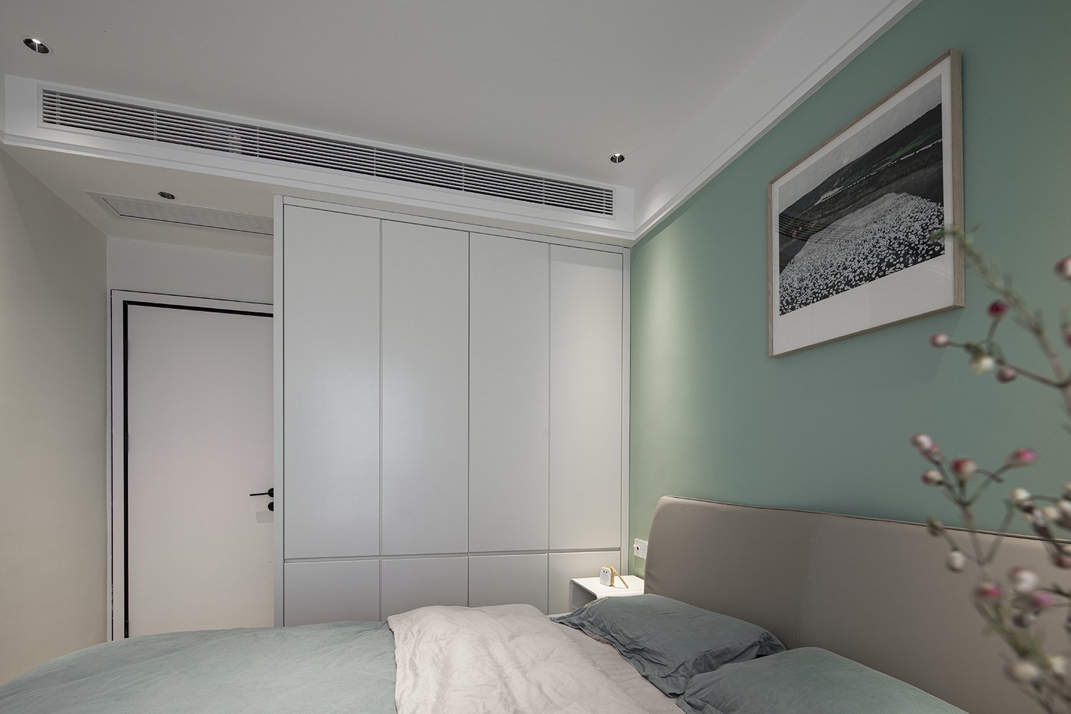 本案为三口之家改善户型。利用户型优势,将厨房做成开放式结合餐厅功能形成功能多元化的趣味就餐空间。阳台空间改造成公共区域借开放功能增大空间感。家是生活的一部分,和业主反复多次磨合后最总定稿了现有的大色调,淡绿基调融入原木碰撞彰显主人低调不失高雅的品味。满屋地板为空间增添几分恰好的温度。